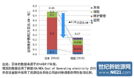 运转维护费用的国内外价格差(出处:光伏发电竞争力强化研究会报告书)