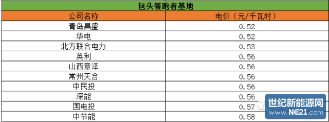 2016年9月22日,包头领跑者基地投标开始,电价部分获得满分的企业共有三家,分别为青岛昌盛日电(0.52元/千瓦时)、华电(0.52元/千瓦时)以及北方联合电力(0.53元/千瓦时),几乎实现用户侧平价上网。