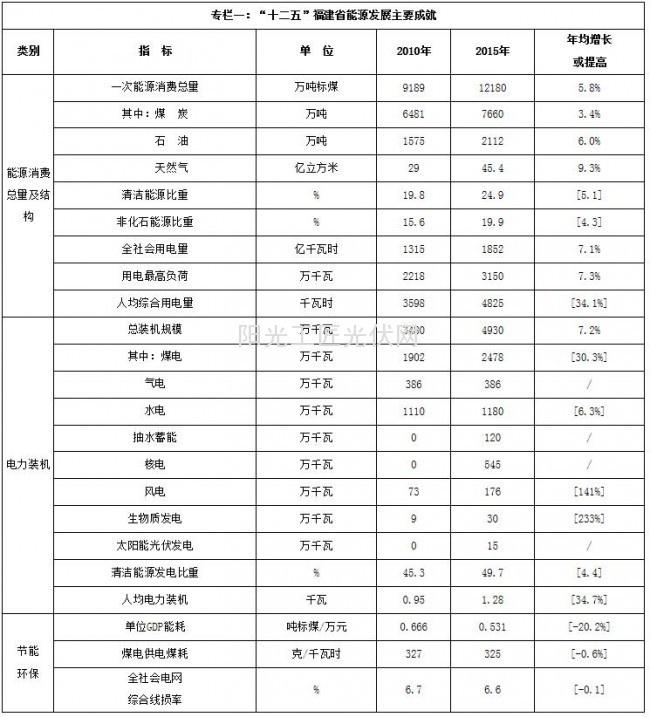 福建省“十三五”能源发展专项规划