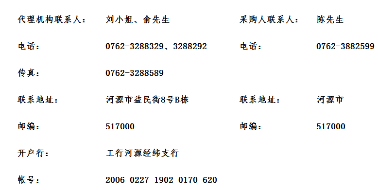 八、投标文件递交地点:河源市益民街8号B栋2楼开标室(投标文件递交时间:2016年11月16日9:30--10:00 ,逾期不予受理)