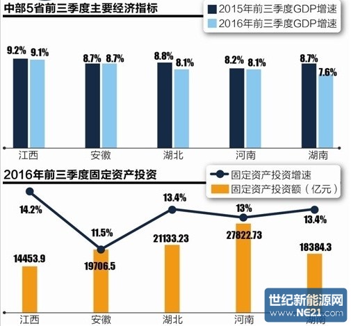 截至10月25日,除山西外,中部五省陆续发布了2016年前三季度的经济运行数据,江西、安徽、湖北、河南、湖南GDP增速分别为9.1%、8.7%、8.1%、8.1%、7.6%。