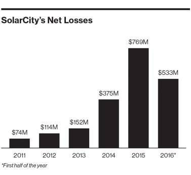 尽管太阳城统治了太阳能板租赁、安装和维护的市场,但过去5年内,太阳城依旧累计亏损20亿美元。