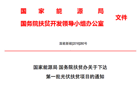2016年10月17日,能源局、扶贫办印发了《第一批光伏扶贫项目的通知》国能新能[2016]280号文件, 文件指出本批光伏扶贫项目总规模516万千瓦,其中,村级光伏电站(含户用)共计218万千瓦,集中式地面电站共计298万千瓦。
