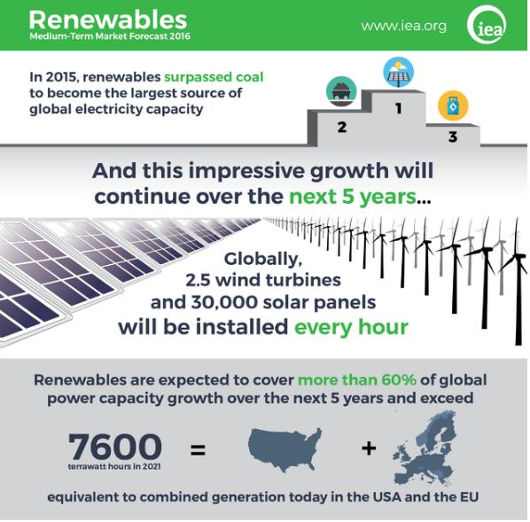 索比光伏网讯:去年,可再生能源已经超过煤炭,成为了全球范围内发电装机容量的最大来源。尽管目前煤炭生产更多的电能,但安装的风能和太阳能已创纪录水平。