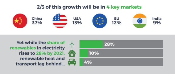 周二,国际能源署大幅提高了5年可再生能源增长的预期。因为可再生能源之所以能够迅速发展,是得益于一些关键国家的政策强力支持及成本急剧下滑。