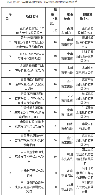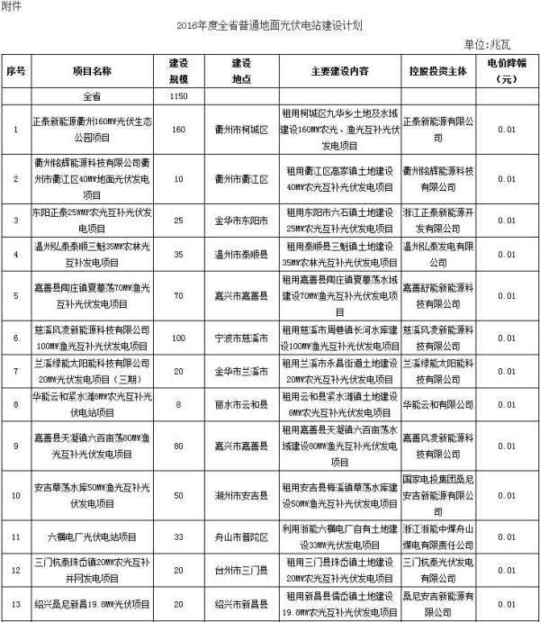 建设规模1150兆瓦 电价最大降幅0.02元 浙江发改委下达2016年度普通地面光伏电站建设计划