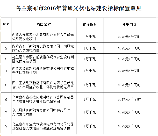 近期自治区发改委下发了《关于我区2016年普通光伏电站建设指标分配的通知》(内发改能源字[2016]903号),下达我市3万千瓦的普通光伏电站建设指标。