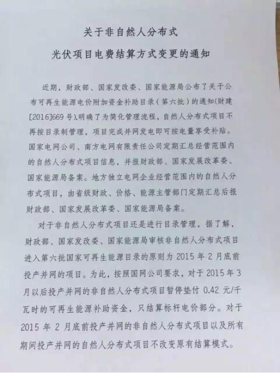三、关于对其他已建成并网项目的处理意见。对于2016年6月30日前已建成并网但未列入规模指标的项目,将在以后的年度规模指标中统筹考虑。部分2014年备案的符合列入规模指标条件的项目,按规定在2016年12月底前建成投产的,在以后的年度规模指标中统筹考虑。