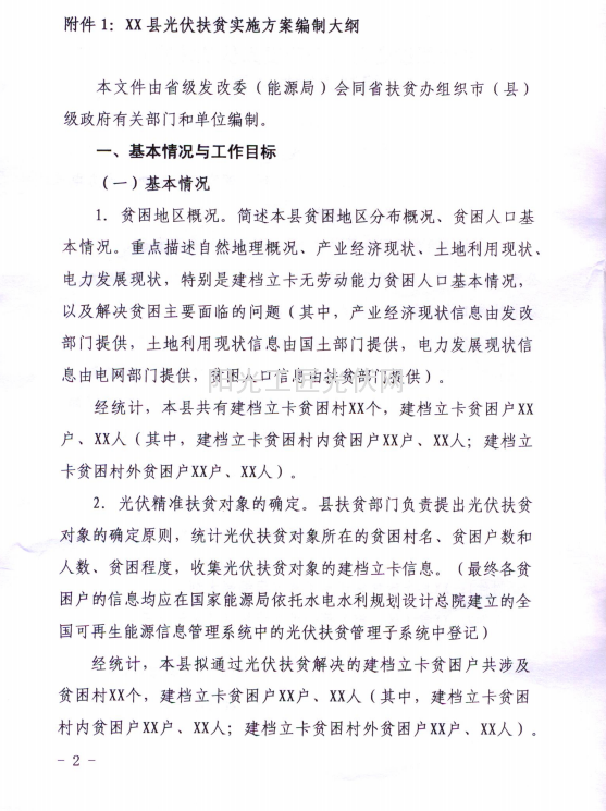 二、光伏扶贫实施方案要严格依据国家能源局综合司印发光伏扶贫实施方案编制大纲要求进行编制(见附件),并提供相关所需附件资料。
