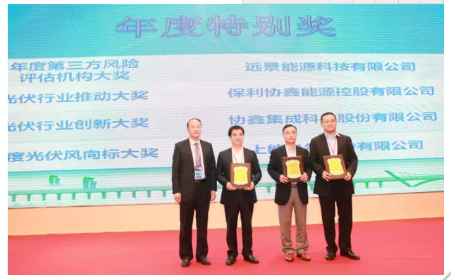 协鑫集成科技股份有限公司在本次颁奖仪式上一举拿下三个行业奖项,光伏行业创新大奖 、优秀组件企业奖以及分布式光伏电站服务商奖。