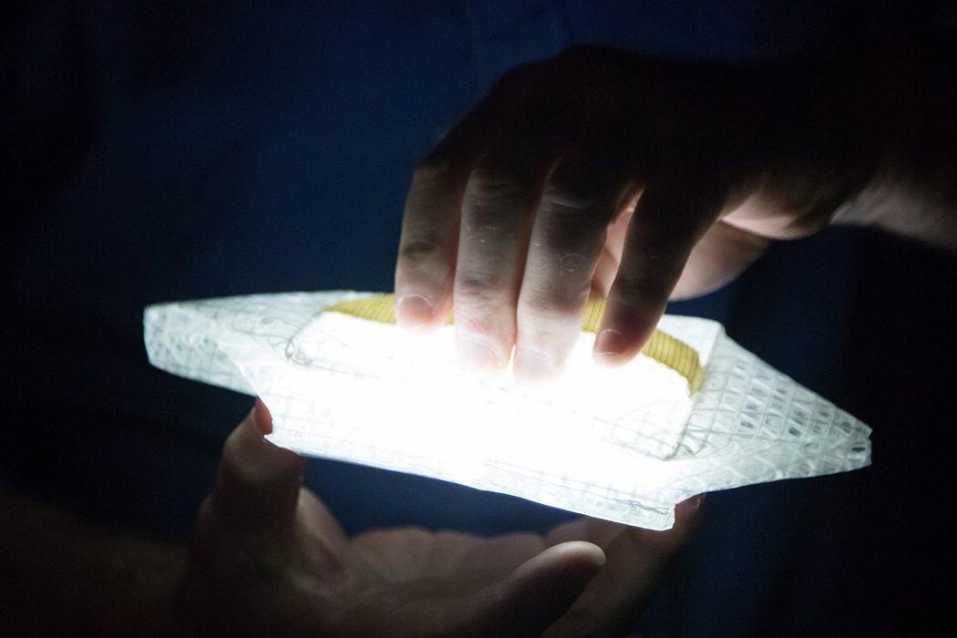 SolarPuff 作为一款新发明的太阳能灯,看起来更像一款可提的小灯笼。由于SolarPuff 的制成材料是高性能的织物,所以本身柔韧性很高,可折叠便于携带。SolarPuff 主要由一个光伏太阳能电板,10 个LED灯和一块锂离子电池构成。作为一款太阳能灯,只要在太阳下充电5个小时,就可以使用5-8 个小时;如果充电8个小时,则可以使用8-12个小时。除此之外,它还具有良好的耐用性、耐水性和可回收性。这就意味着SolarPuff 不仅能够可以禁起多次折叠甚至还能漂浮在水面上。
