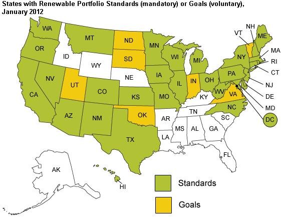 在美国,REC有两个截然不同的市场:合规市场(ComplianceMarkets)和自愿市场(VoluntaryMarkets)。合规市场是依据可再生能源配额标准(RenewablePortfolioStandard,简称RPS)相关法律法规创建的,存在于美国29个州、哥伦比亚特区和波多黎各自由邦。自愿市场是消费用户出于自身支持可再生能源使用的意愿而去购买可再生能源的市场。