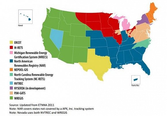 RECs都会被分配一个唯一的ID号以确保其不会被重复购售,并由区域追踪系统(trackingsystem)如WREGIS、NARR、ERCOT、M-RETS、PJM-GATS等负责追踪。美国大多数有合规市场的州都会被要求使用这种第三方的追踪系统,由于该系统有较好的操作性,也逐渐被自愿市场纳入使用。