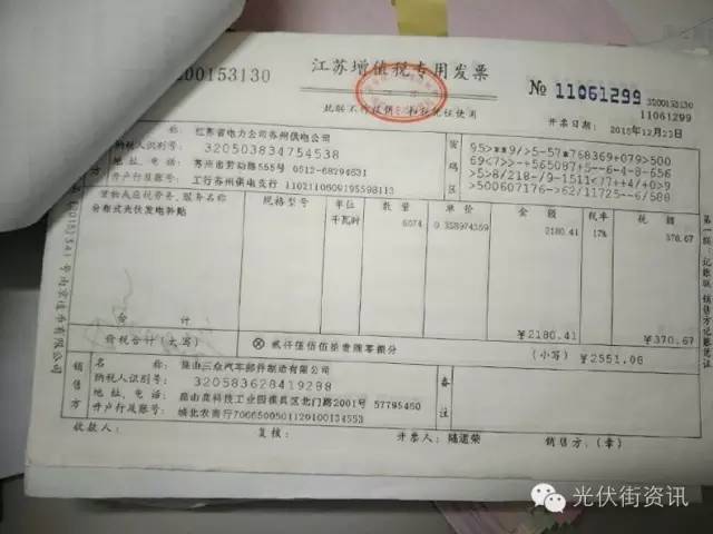 收益真的有那么多吗?且看国家电网补贴发票: