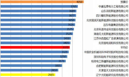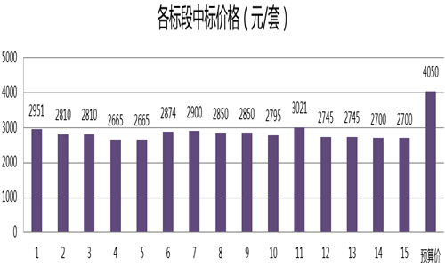 仅以第5标段为例,该标段一共有15家企业参与竞标,平均竞标价为3370元/套。而辽宁太阳能研究应用有限公司以2665元/套中标,低于平均价近705元/套,价格偏离平均值高达21%。