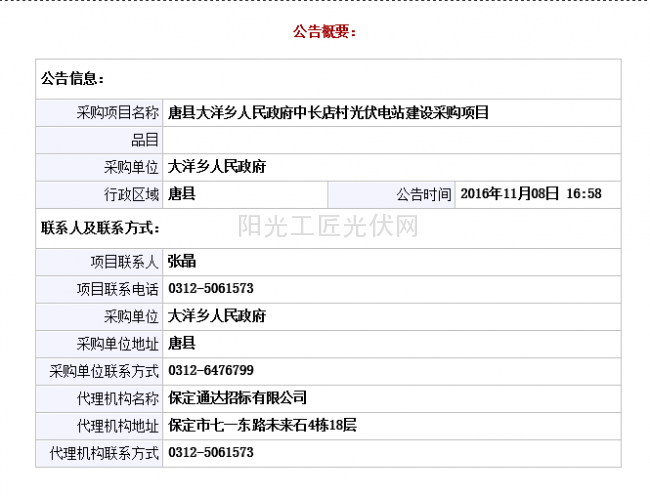 唐县大洋乡人民政府中长店村光伏电站建设项目流标公告