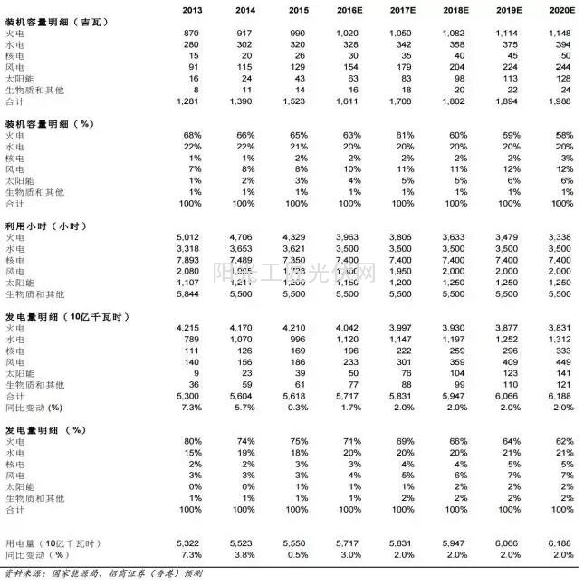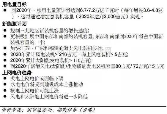我们估计到2020年,风电/太阳能装机容量将达到约240/130GW。风光的总发电量将占2020年国家总发电量约9.6%。