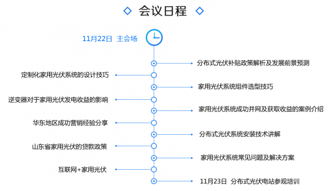 新奥太阳能源集团旗下PVtrade光伏交易网,将于11月22-23日在山东济南主办家用光伏系统推介会暨华东地区第二届光伏技术安装培训会。从政策解析、技术培训、营销指导到分布式电站参观,四大亮点让您收获满满: