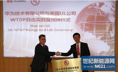 UL能源系统及电动车业务发展总监Francisco Martinez为华为授予“UL认可目击测试实验室”资质,华为全球认证检测中心(可靠性实验室)主任张兴海为代表接受颁牌