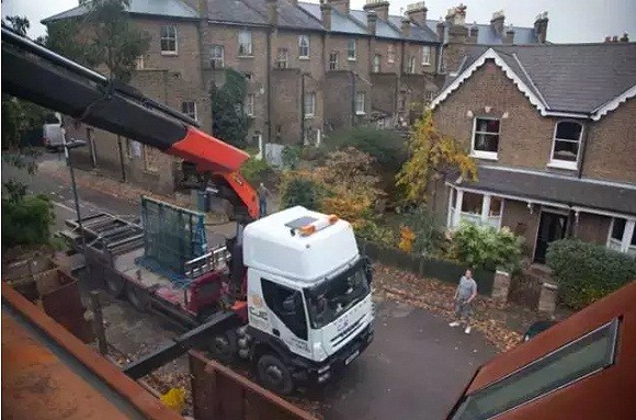 Tim一直忙碌在“最前线”,今天约大吊车来装屋顶,左边一点,再左边一点,等等,好像有点歪了……