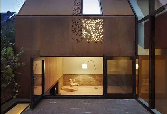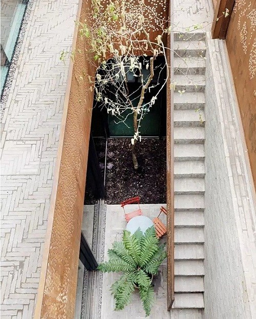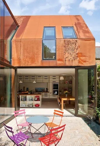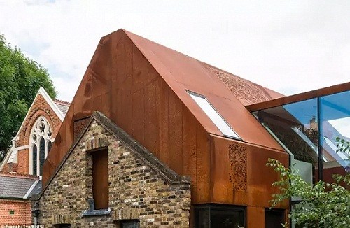 他找工厂定制了一个金属屋顶,特意做旧,装点上岁月的痕迹,唔...这样跟老砖墙才最配嘛。