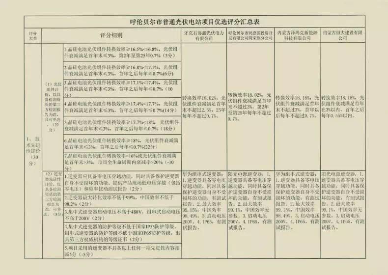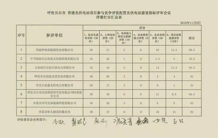 呼伦贝尔2016年30MW普通光伏指标竞选评审结果出炉,以下为详情。