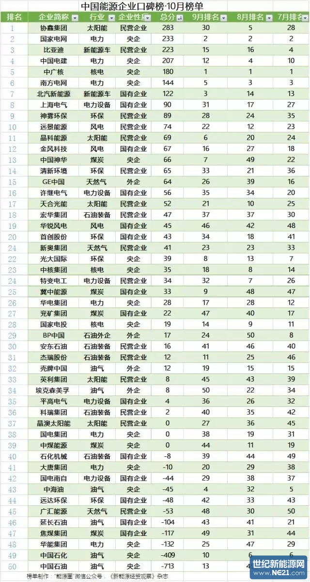 在中国能源企业口碑榜-10月榜单制作周期内,协鑫集团还发布了“协鑫云”系统、宣布与GE合作、开拓澳洲市场等,这一系列炫目的举动为它增色不少。