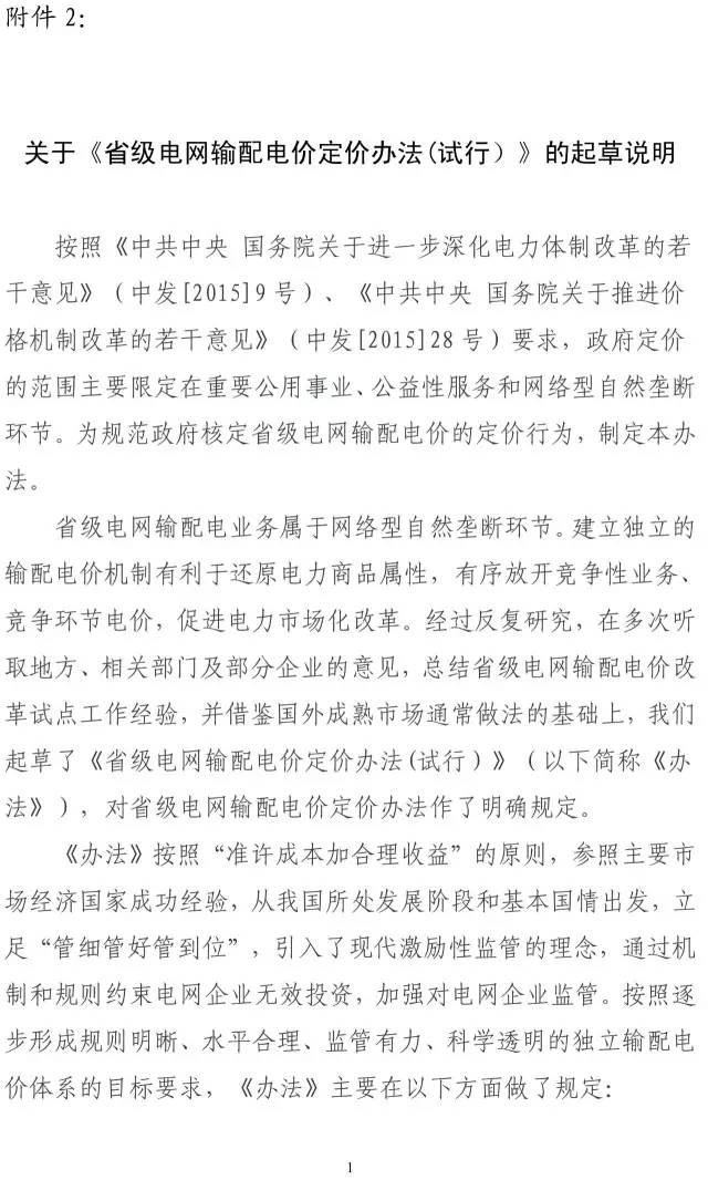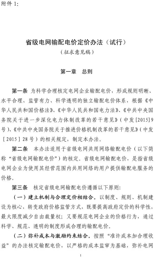 1、《省级电网输配电价定价办法(试行)》(征求意见稿)