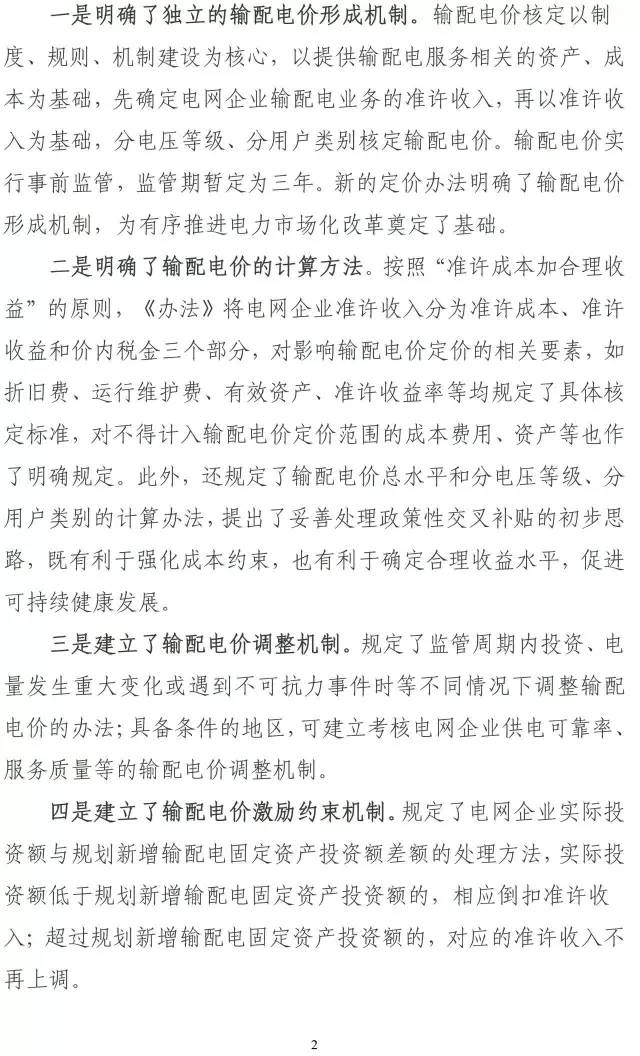 2、《省级电网输配电价定价办法(试行)》的起草说明