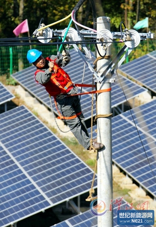 11月12日,电力工人在保康县马良镇赵家山村光伏扶贫电站接线并网发电。