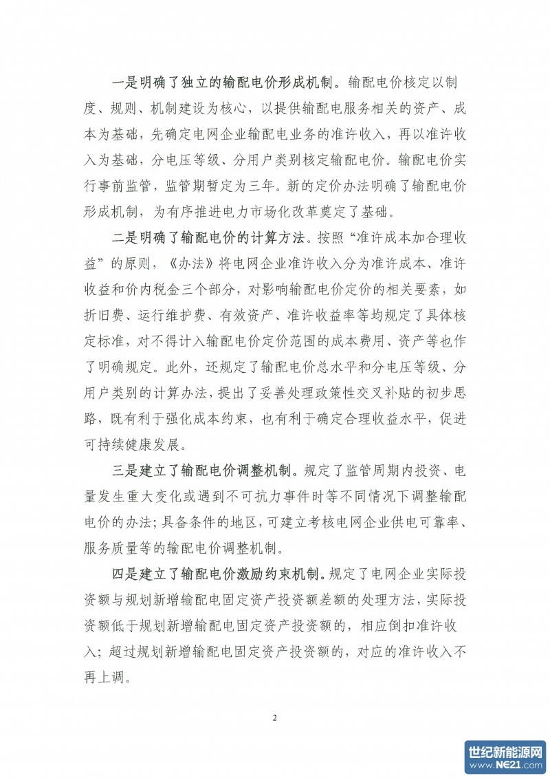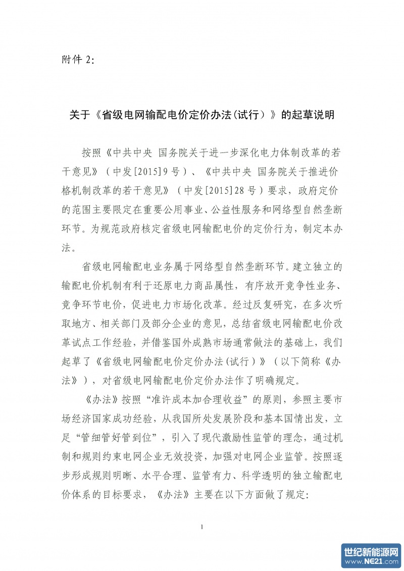 2、《省级电网输配电价定价办法(试行)》的起草说明