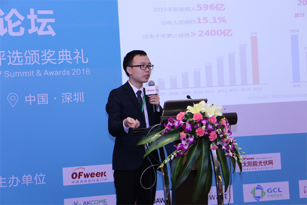 OFweek行业研究中心高级资深分析师孙栋栋正在演讲下午演讲主题为“光伏行业逆变器创新发展及技术应用”。来自