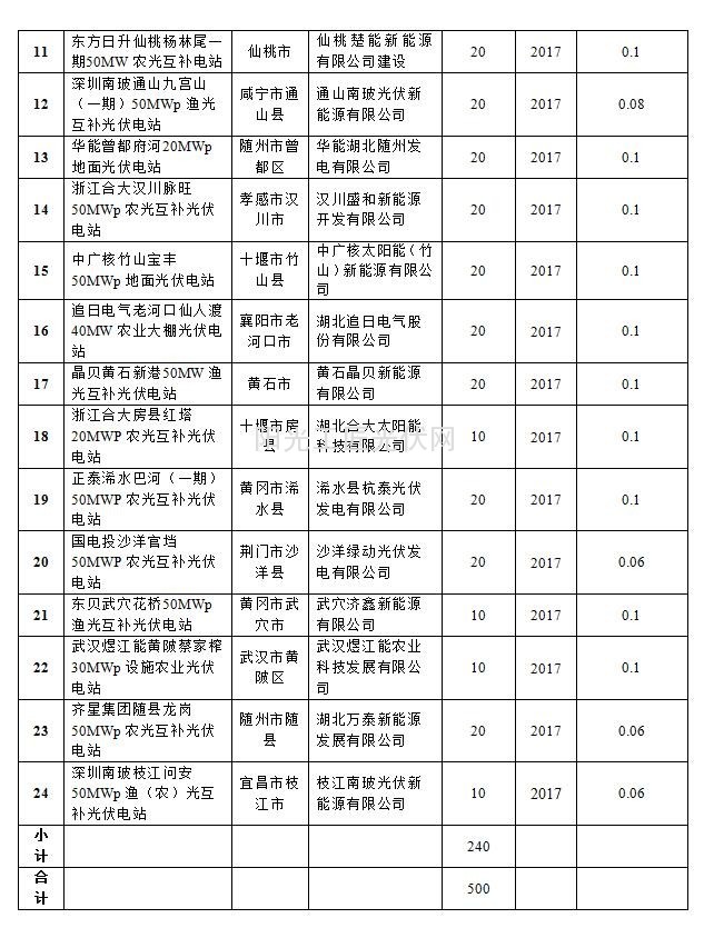 二、关于50万千瓦规模指标的分配情况。根据竞争比选结果,将50万千瓦规模指标分配到竞争比选排序的前24个项目(见附件)。其中,排名前10名的项目分配2016年的规模指标,排名11-24名的项目分配2017年的规模指标。若今年国家调增我省光伏电站规模指标,省能源局将依序予以调整。