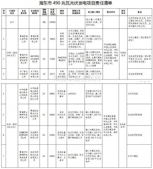 为加快推进我市光伏发电项目,落实各项建设条件,争取尽早开工建设,现将市发展改革委编制的《海东市490兆瓦光伏发电项目责任清单》和《海东市60兆瓦光伏扶贫发电项目责任清单》转发给你们,请结合实际加快推进落实。