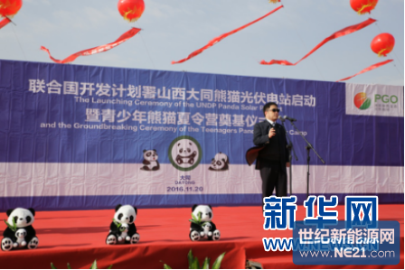 新华网北京11月21日电(索炜)11月20日,由联合国开发计划署(UNDP)及光伏绿色生态合作组织(下称“PGO”)联合主办的全球首个“熊猫电站”启动暨青少年熊猫夏令营奠基仪式在山西大同正式举行。