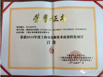 正泰电源系统获得新能源领域上海高新技术成果转化项目百佳殊荣。