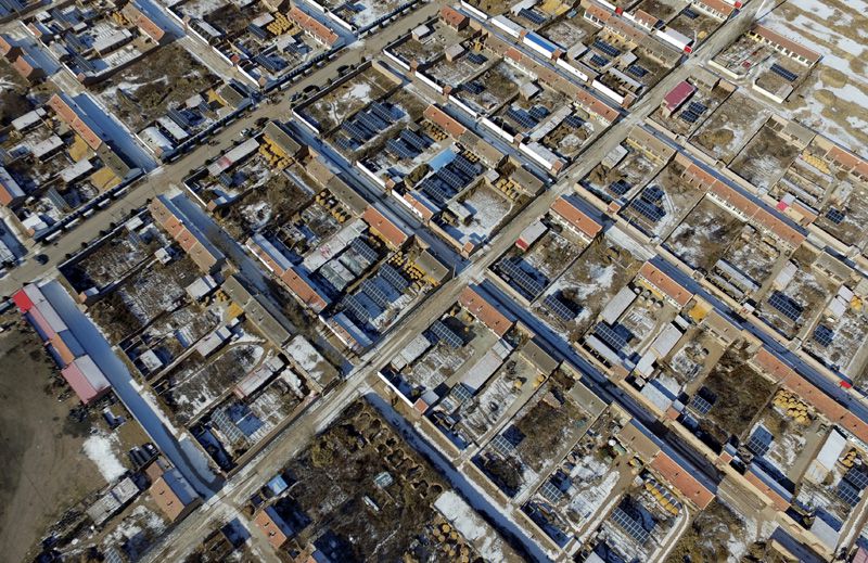 这是航拍的阳原县“光伏小镇”双庙村(11月23日摄)。