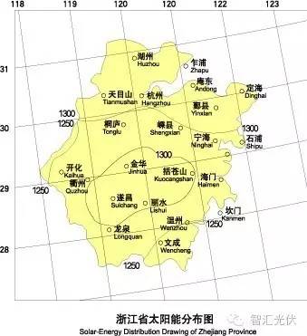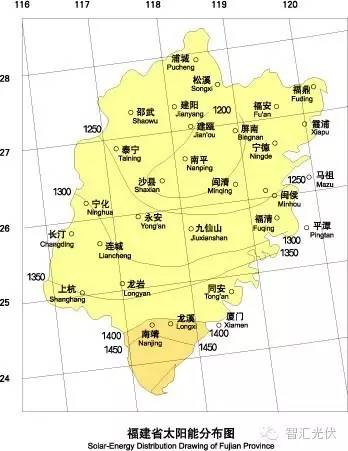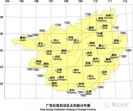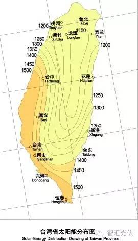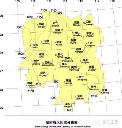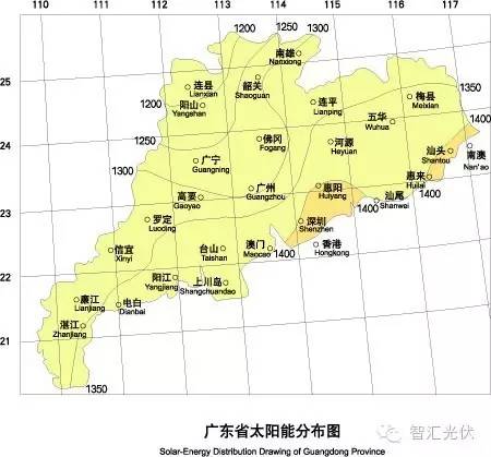 该谱图采用了98个太阳能辐射观测站的数据,对周边的资源情况进行推衍。由于实测数据点有限,而且完成时间较早,近10年太阳能辐射有逐年下降的趋势,因此谱图数据会与今实际数据有一定偏差。