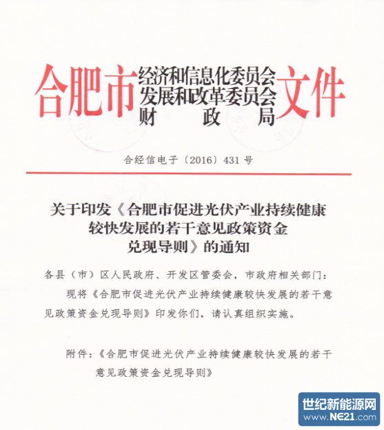 合肥市促进光伏产业持续健康较快发展
