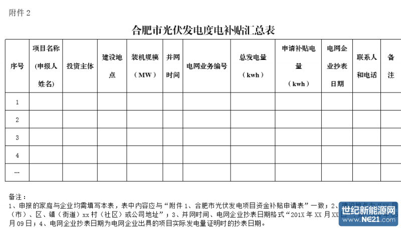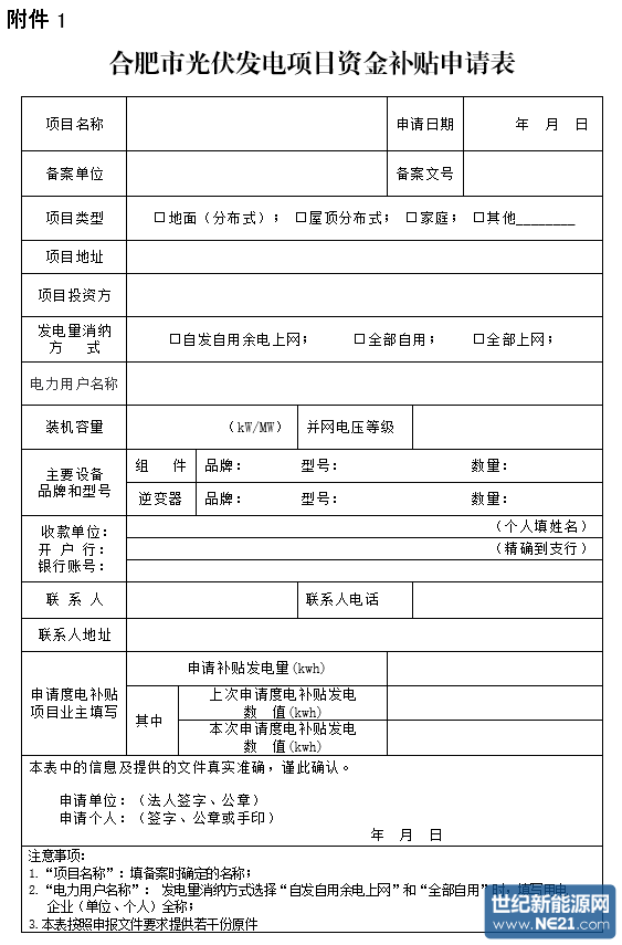 附件:1、合肥市光伏发电项目度电补贴申请表