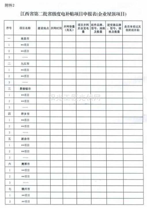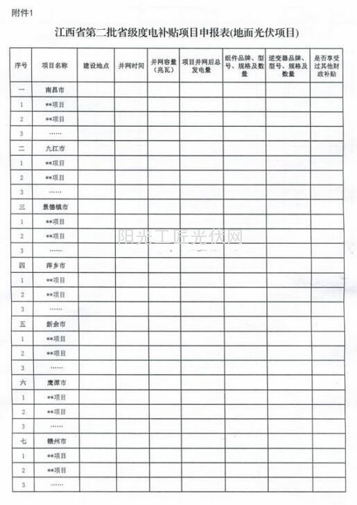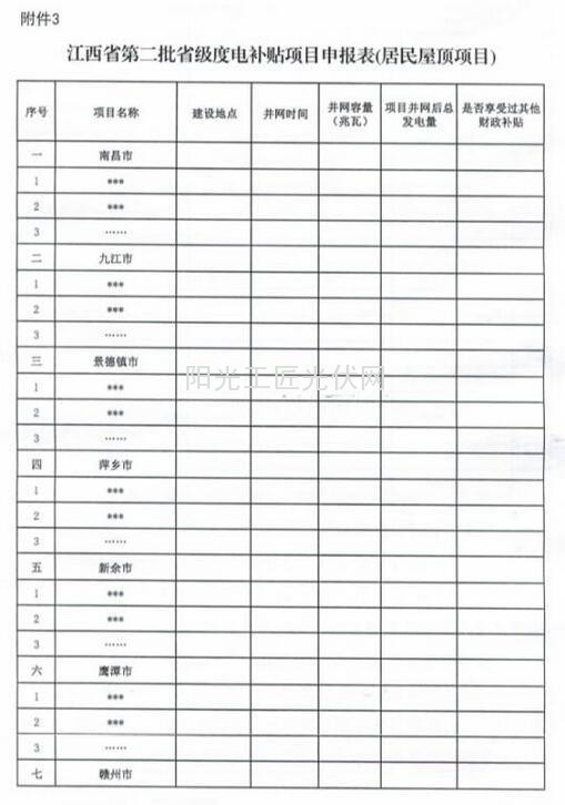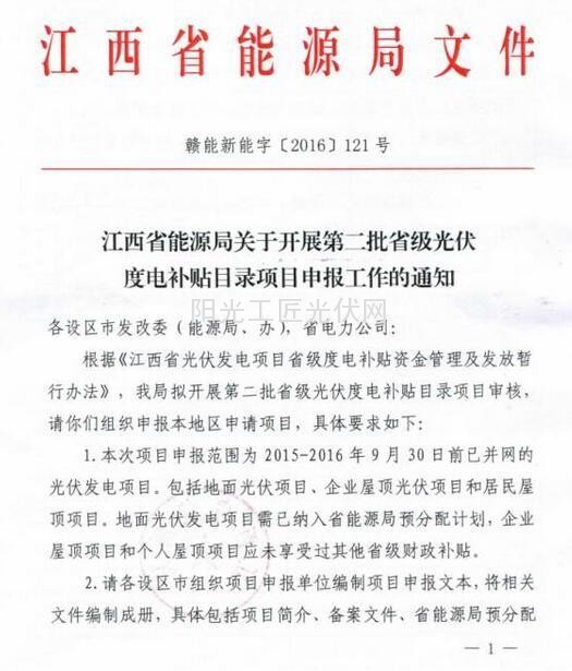 江西省曾发布《加快推进全省光伏发电应用工作方案》提出力争2017年全省光伏发电装机容量达到180万千瓦以上的建设目标,并提出对于列入计划的项目,给予每度电0.2元省级补贴的政策。