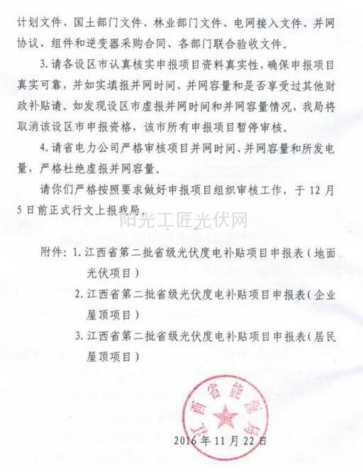 2016年6月24日,江西能源局发文下达该省2016年新增400MW普通光伏电站新增建设规模的预分配方案,该指标主要分配给已经同意开展前期工作或已经承诺建设计划的项目(可点击查看光伏們日前报道江西2016年400MW普通光伏建设规模预分配完成,16个项目进入名单并要求今年建成并网)。