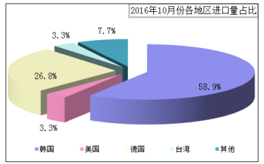 图2 2016年10月份各地区进口量占比 数据来源:海关
