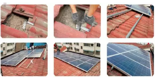 根据当地纬度和太阳辐射数据,以及屋面具体情况,组件安装方向为顺着屋顶安装,安装角度和屋顶角度一致。本工程光伏组件方阵采用固定式安装,支架使用做过阳极氧化处理的铝合金。材料型号根据当地风、雪荷载计算,保证支架满足 25 年运行期要求。