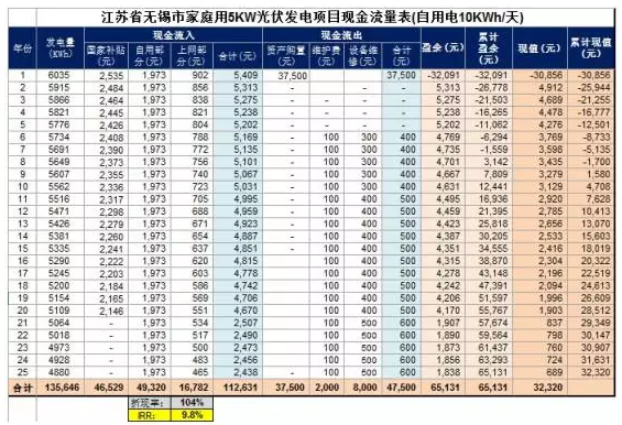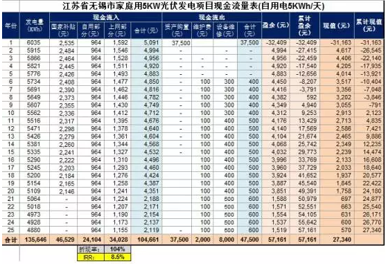 第一种情况:用电量较小,每天白天用电为 5KWh,财务模型如下: