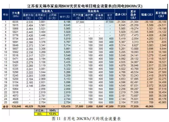 第三种情况:用电量较大,每天白天用电 20KWh,财务模型如下: