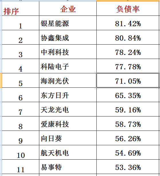 光头君盘点发现,23家企业,负债率处于23%——82%期间,跨度较大。负债率较高的前两位是银星能源的81.42%和协鑫集成的80.84%。科士达的负债率最低,仅为23.2%。