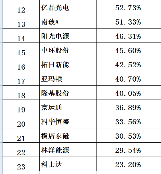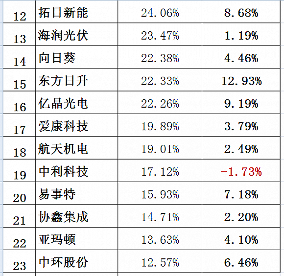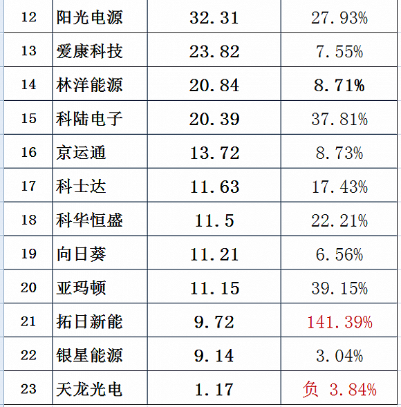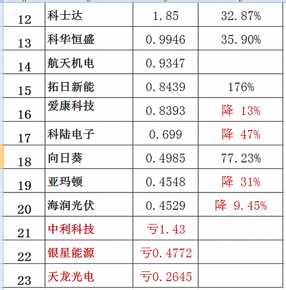 中利科技、银星能源、天龙光电排在后面,录得亏损。