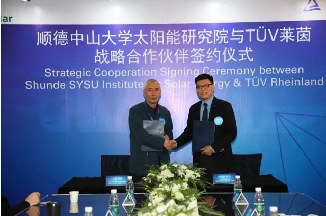 根据协议,顺德中山大学太阳能研究院与TÜV莱茵将在光伏新能源领域,联合推动双方从技术、研发、商业、人才培养、创新等多方面展开广泛深入的合作,内容包括:光伏电池、光伏组件、光伏系统检测认证方面的技术合作、光伏电站评价体系方面的基础性技术研发工作、光伏电站现场检测技术方面的研发与商业合作、光伏领域的人才培养、光伏标准领域的技术研讨和创新、行业研讨会及重大行业活动中的信息交流和资源共享等。