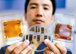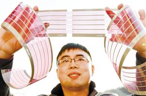 日前,柔性太阳能电池在南京亮相。CFP供图